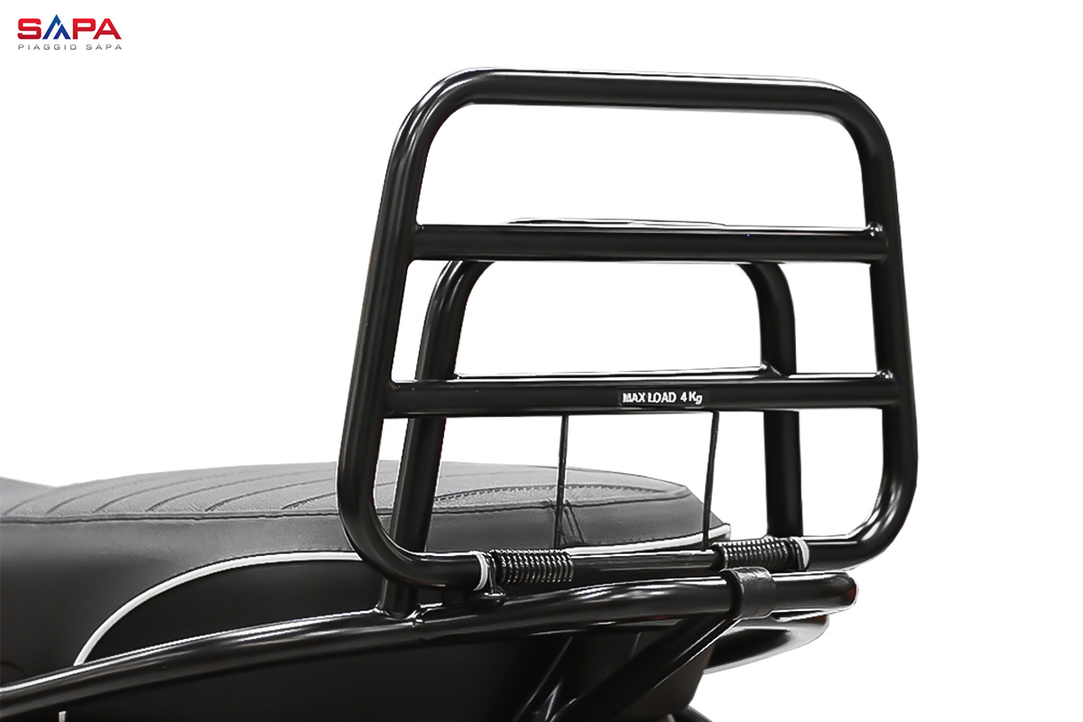 Baga sau sơn đen mờ cho Vespa có khả năng gập lại, giúp tiết kiệm không gian và mang lại sự tiện lợi cho người dùng. Khi không cần sử dụng, bạn có thể gập baga lại để chiếc xe trở nên gọn gàng và dễ dàng di chuyển hơn.