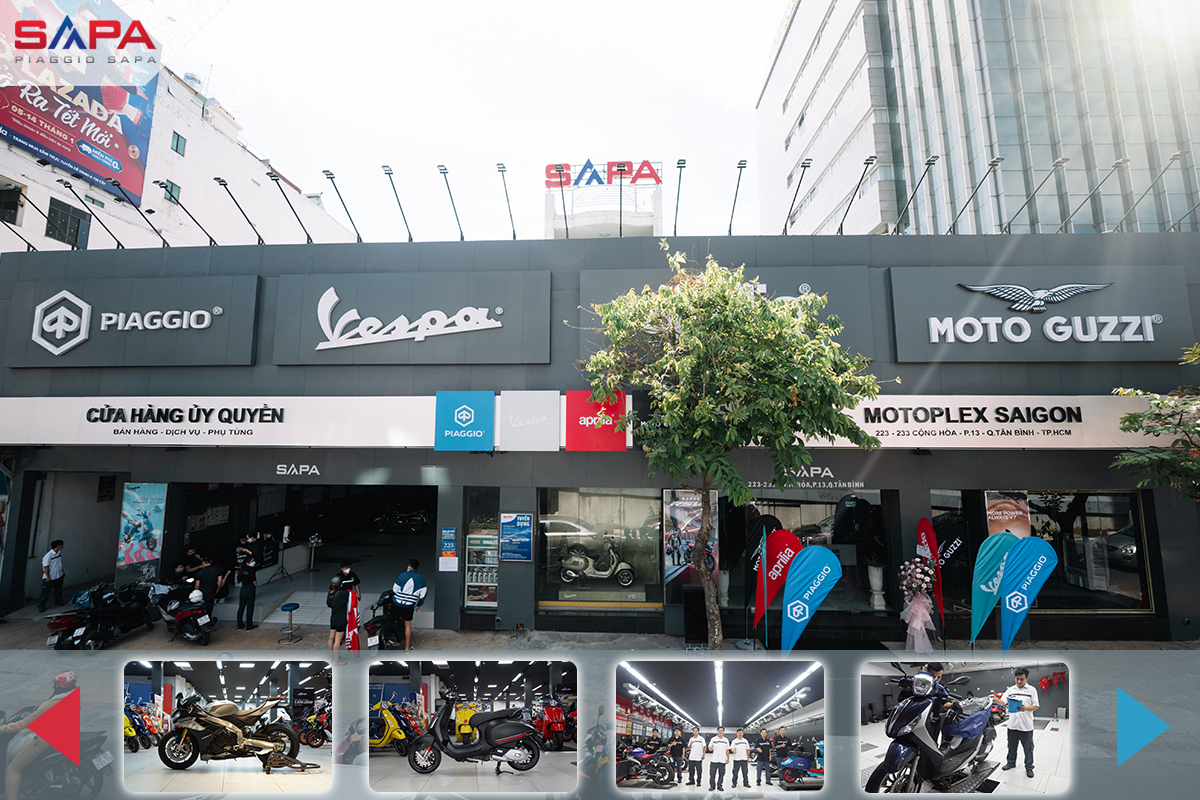 Với diện tích không gian 1.600m2 - Nơi đây là Showroom cũng như Trung tâm bảo dưỡng lớn nhất tại Tp.HCM. Khách hàng sẽ được khám phá và trải nghiệm dịch vụ theo tiêu chuẩn Motoplex toàn cầu. Trung tâm Motoplex Sài Gòn (Vespa Sapa Cộng Hòa) trực thuộc hệ thống Piaggio Sapa, ngoài  trực tiếp phân phối chính hãng các dòng xe Vespa, Piaggio, Aprilia, Moto Guzzi còn cung cấp phụ kiện, phụ tùng chính hãng cho mọi khách hàng. Dịch vụ tại trung tâm:
