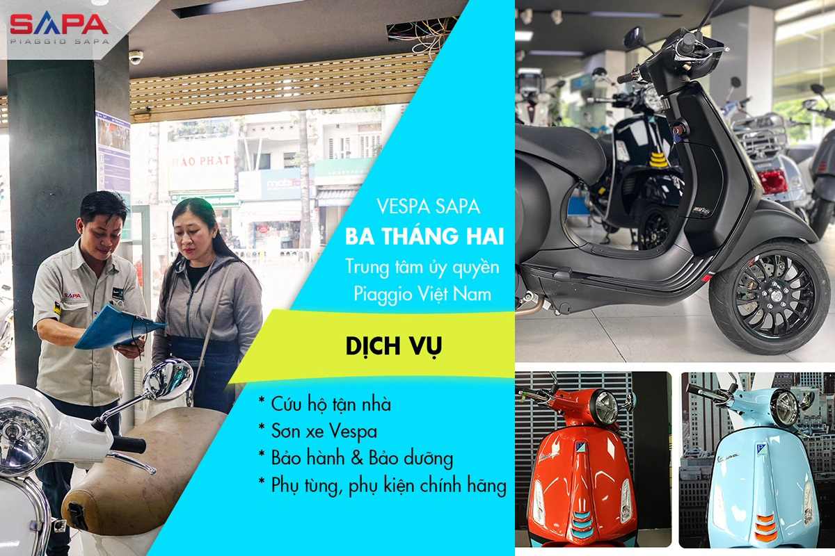 Vị trí thuận tiện cho mọi khách hàng khu vực trung tâm Tp.HCM. Phòng chờ riêng biệt, yên tĩnh và thoáng mát, rộng rãi, có đủ tiện nghi phục vụ theo tiêu chuẩn của Piaggio. Mọi khách hàng đến với trung tâm Vespa Sapa Ba Tháng Hai được phục vụ cafe pha máy miễn phí. Với khách hàng mua xe, đây là nơi có đầy đủ các phiên bản xe Vespa, Piaggio mới nhất và phân phối chính hãng.