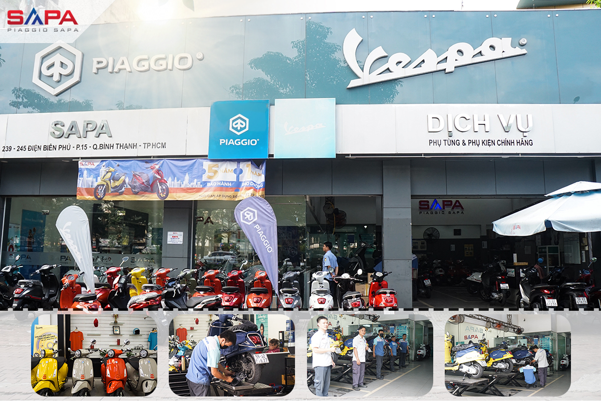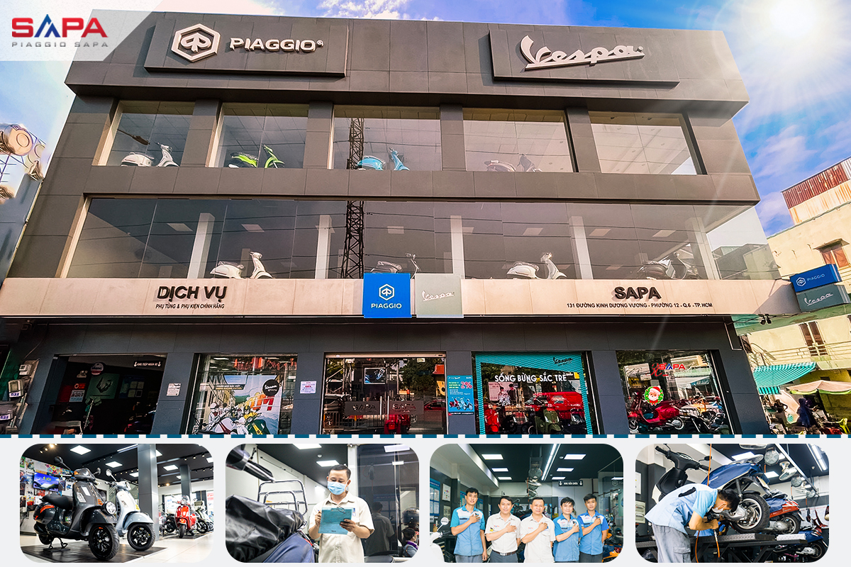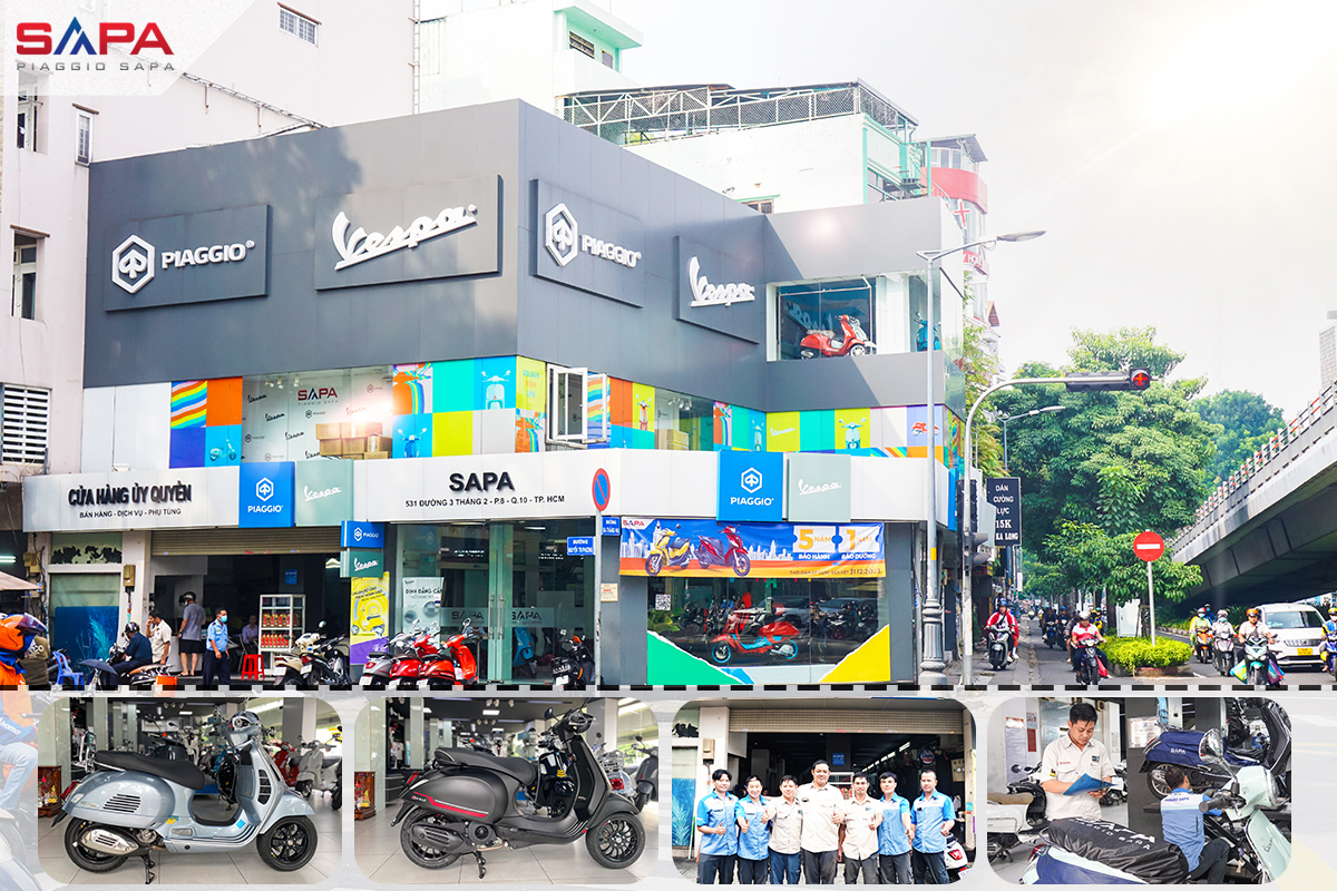 Trung tâm Vespa Sapa này nằm trong khu vực Quận 7 cũ và là nơi duy nhất tại khu nam Sài Gòn. Một trong những nơi tiếp nhận lượng lớn khách hàng bảo hành, bảo dưỡng xe Vespa, Piaggio, là trung tâm có đẩy đủ lượng xe mới lớn nhất tại khu vực Phía Nam Saigon cho khách hàng đến mua sắm.