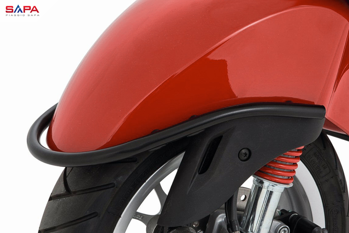 Với thiết kế thanh thoát, tỉ mỉ, bộ bảo vệ này không làm mất đi vẻ đẹp tinh tế của chiếc xe, mà còn giúp tạo điểm nhấn mạnh mẽ, làm nổi bật những đường cong mềm mại và hình dáng đặc trưng của Vespa. Phụ kiện hoàn toàn phù hợp với các dòng xe Vespa Primavera mà không gây vướng víu hay bất tiện khi di chuyển.