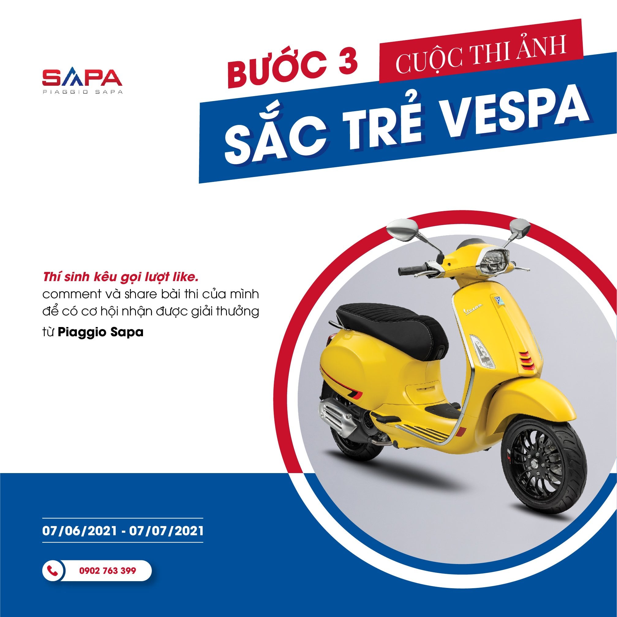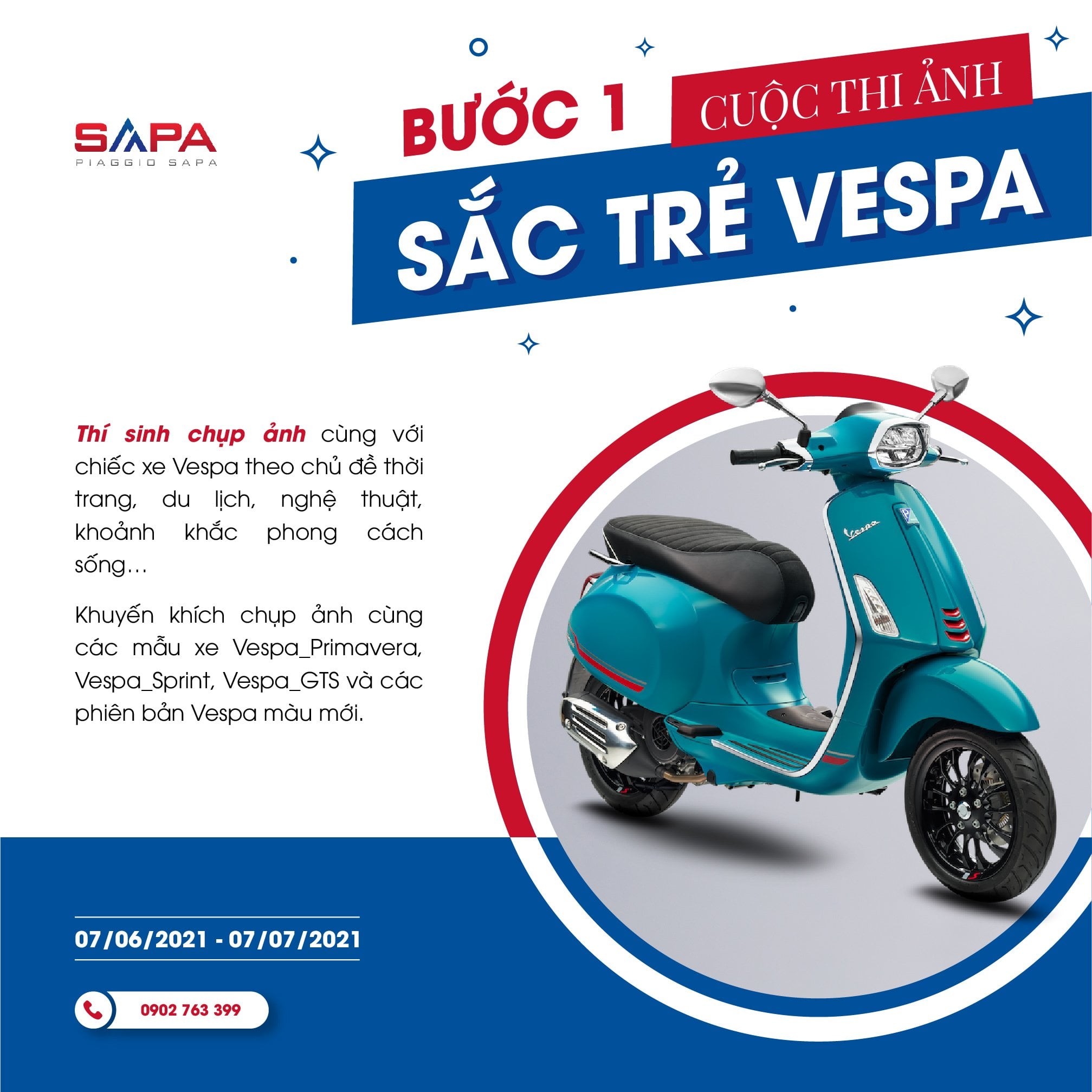 - Bước 1: Thí sinh chụp ảnh cùng với chiếc xe #Vespa theo chủ đề thời trang, du lịch, nghệ thuật, khoảnh khắc phong cách sống…Khuyến khích chụp ảnh cùng các mẫu xe #Vespa_Primavera, #Vespa_Sprint, #Vespa_GTS và các phiên bản Vespa màu mới.