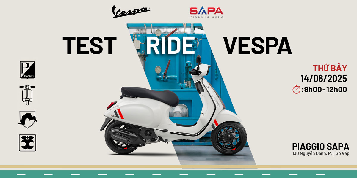 Trải nghiệm lái thử các dòng xe mới nhất 2025, đăng ký ngay với Vespa Sapa Nguyễn Oanh để tham gia sự kiện Test Ride trước khi quyết định mua xe.