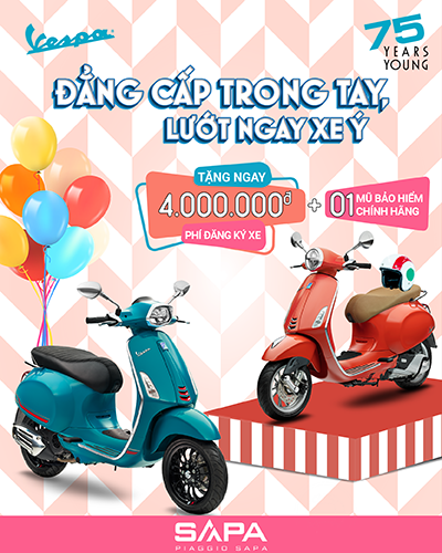 PIAGGIO SAPA dành tặng bạn ƯU ĐÃI HẤP DẪN giá trị lên đến 5,000,000đ khi mua xe Vespa từ 23/9/2021 đến 23/10/2021.Cơ hội trải nghiệm ngay biểu tượng đẳng cấp Ý với chương trình ƯU ĐÃI hấp dẫn khi mua dòng xe Vespa bất kì, bạn được tặng ngay: