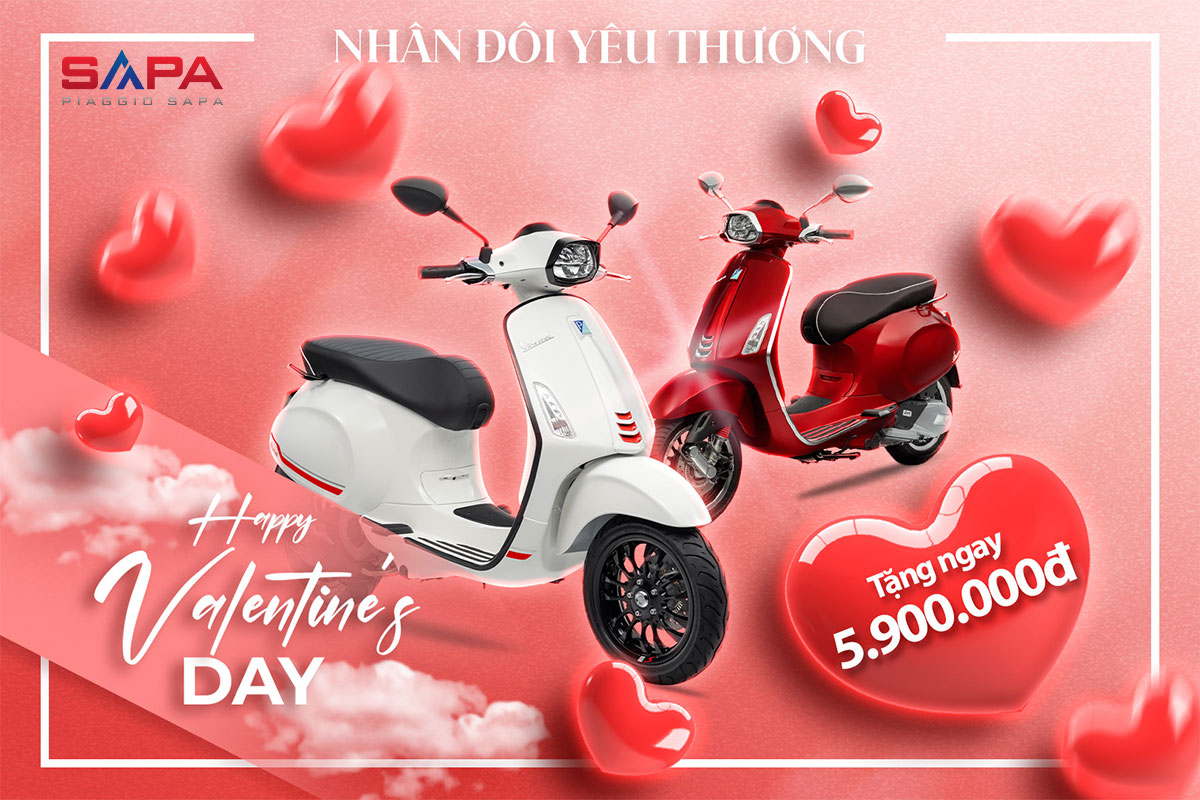 Ngàn lờn anh nói đâu bằng làng khói Vespa, vẻ đẹp thước tha đã thống trị cả vạn đường phồn hoa. Tình yêu có thể bất diệt nhưng điều tuyệt vời hơn là khi được tặng trọn vẹn một chiếc Vespa đã mơ ước ở một thời tuổi xuân nhân ngày 14.02, cùng Vespa nhân đôi những yêu thương. Đại lễ tình yêu của cả thế giới và đại lễ ưu đãi mua Vespa cũng đang diễn ra tại Vespa Sapa. Vespa Sapa tài trợ ngay 5.900.000đ cho tất cả các dòng xe Vespa/Piaggio mới nhất để cùng bạn dành tặng cho nửa yêu thương còn lại.
