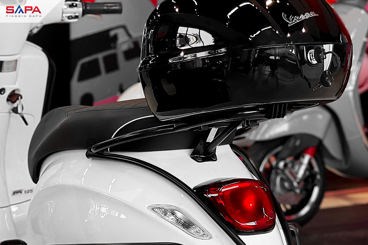 Giá đỡ hộp đựng đồ màu đen là phụ kiện chính hãng không thể thiếu nếu bạn muốn tăng tính tiện dụng và thẩm mỹ cho chiếc Vespa của mình.