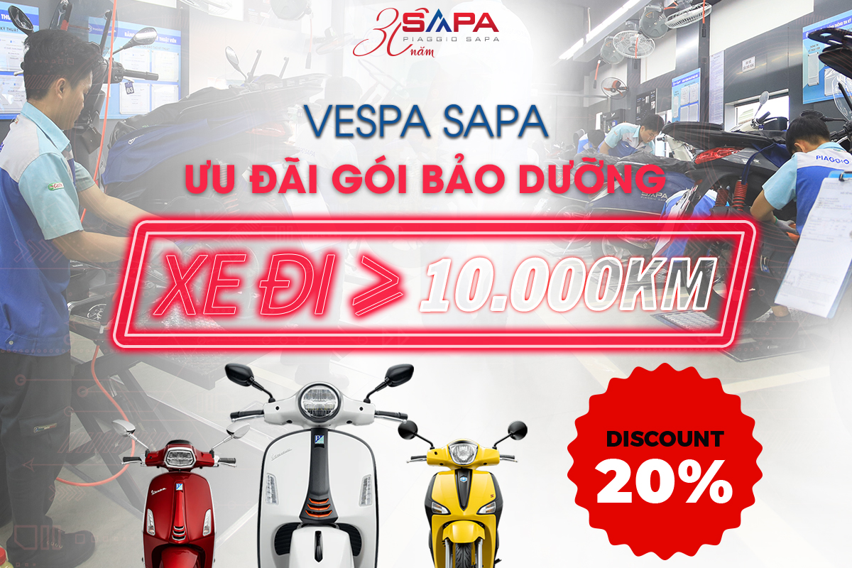 Việc bảo dưỡng toàn bộ khi xe đã cán mốc 10.000km là cực ỳ quan trọng, và đây là cơ hội tuyệt vời để chăm sóc và kiểm tra, bảo dưỡng cho Vespa, Liberty, Medley của bạn trong tháng 6 này. Ưu đãi gói kiểm tra, bảo dưỡng toàn bộ cho xe đi trên 10.000km với toàn bộ 19 hạn mục thiết thực và cần thiết nhất cho xe.