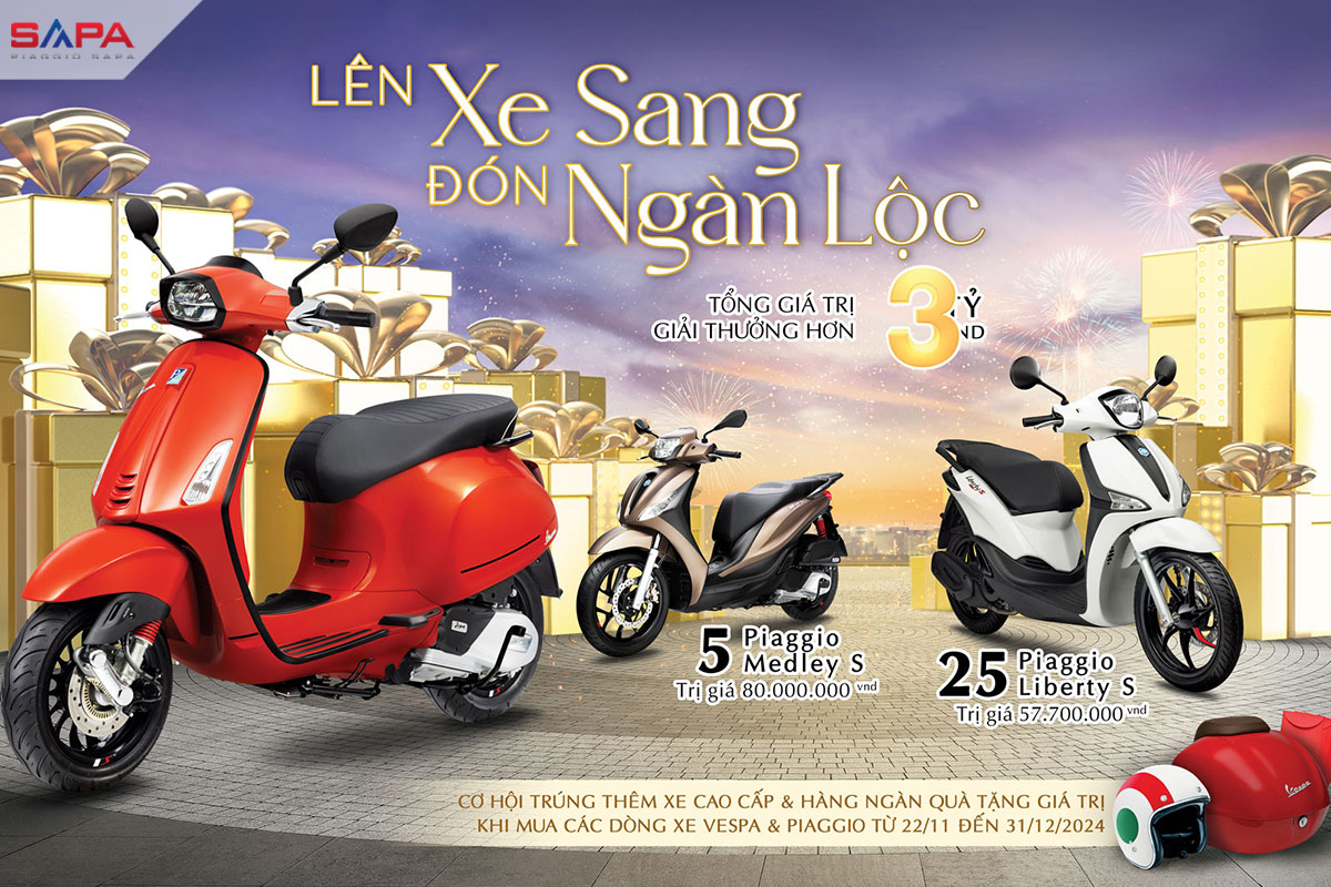 Tháng cuối cùng năm 2024, Vespa mở ra ‘lễ hội’ mua sắm Vespa/Piaggio cùng chương trinh ưu đãi lớn nhất từ trước đến nay. Đặc biệt, bạn tham gia là sẽ có quà!