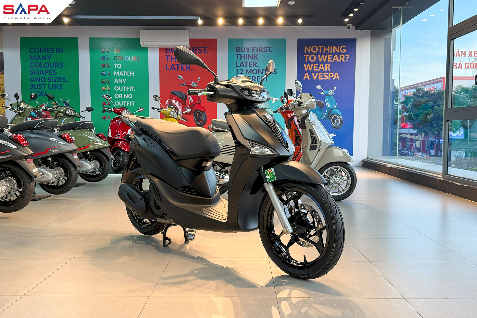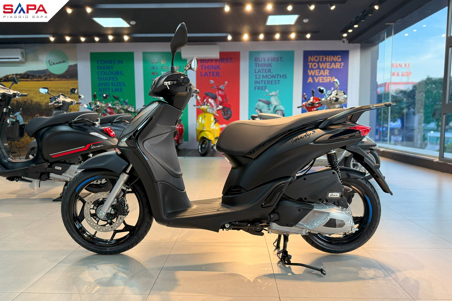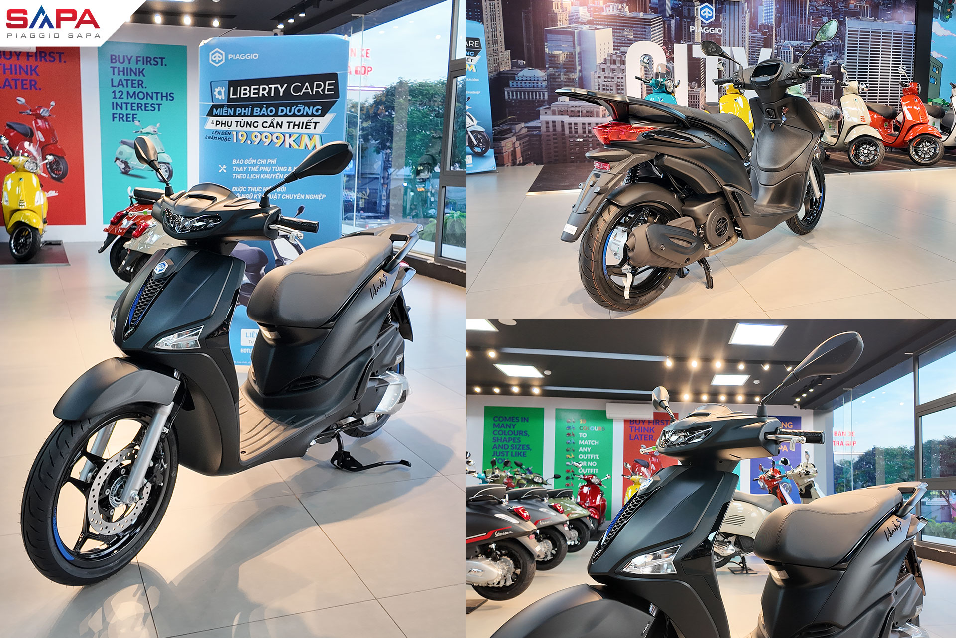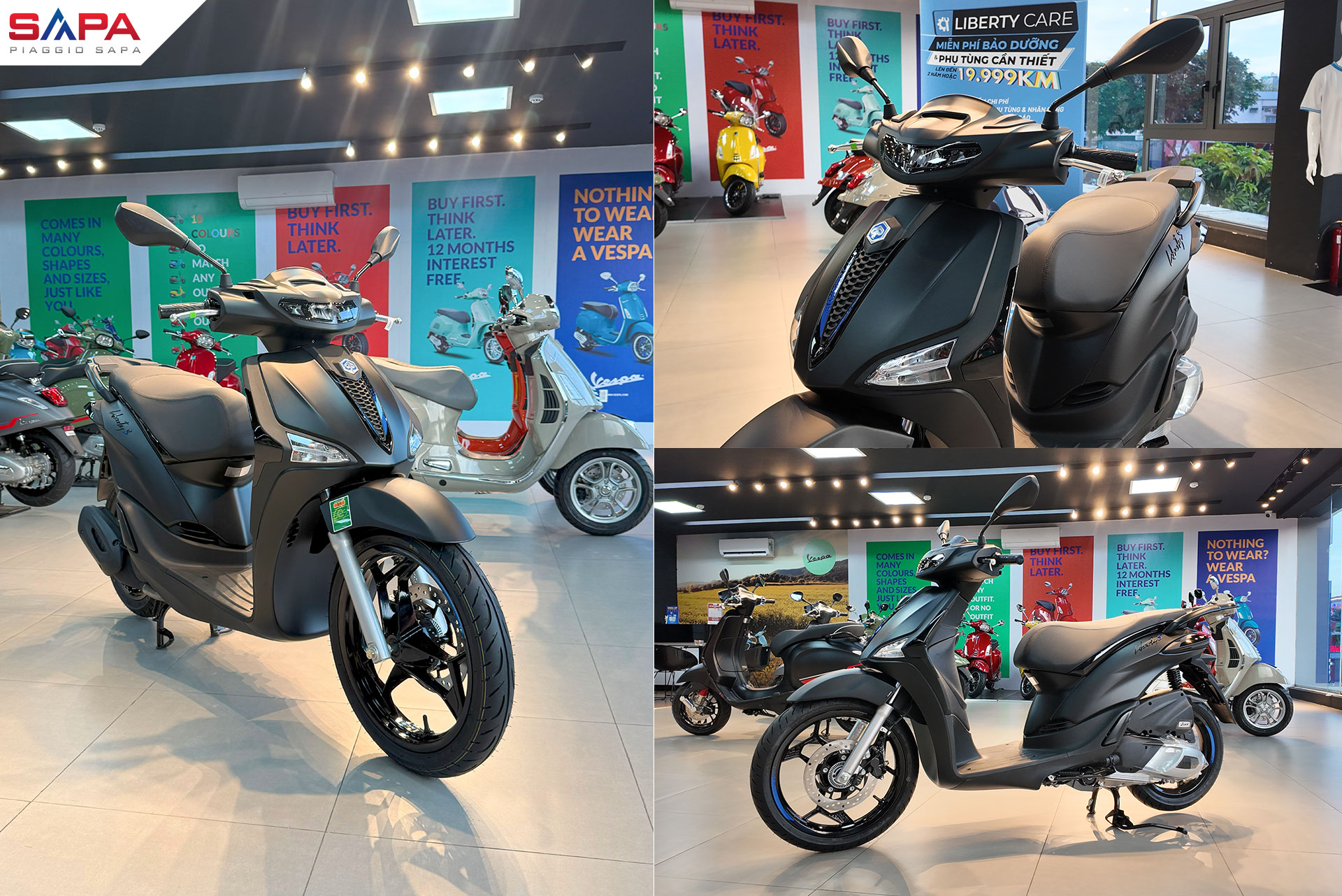 Xe Liberty S phiên bản màu đen nhám có sẵn tại các hệ thống đại lý chính hãng Piaggio Sapa: