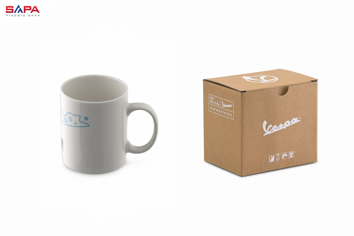 Chiếc ly sứ này mang trong mình tinh thần Vespa một cách nhẹ nhàng và trang nhã. Màu trắng sứ cao cấp kết hợp cùng logo Vespa in sắc nét không chỉ gợi nhớ đến những chuyến hành trình tự do, mà còn khiến mỗi ngụm cà phê sáng thêm phần thi vị và tinh tế.