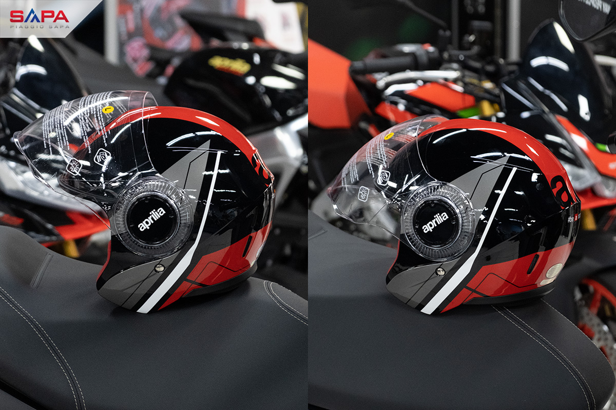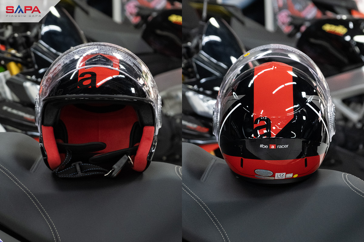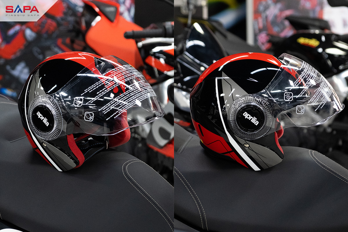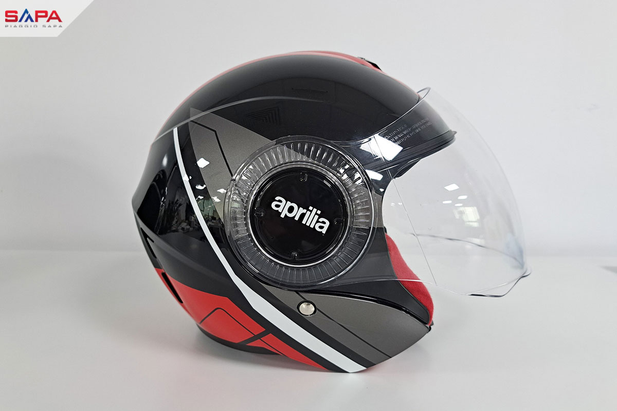 Đây là một chiếc mũ bao biểm cao cấp của Aprilia phân phối chỉnh hãng bởi Piaggio Sapa. Thiết kế theo phong cách đua với tông màu đỏ đen đặc trưng của nhà Aprilia. Sử dụng kính fullface và chất liệu cao cấp, gọn nhẹ, tạo nên phong cách đậm chất thể thao.