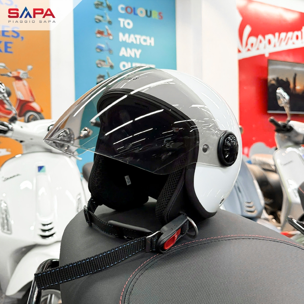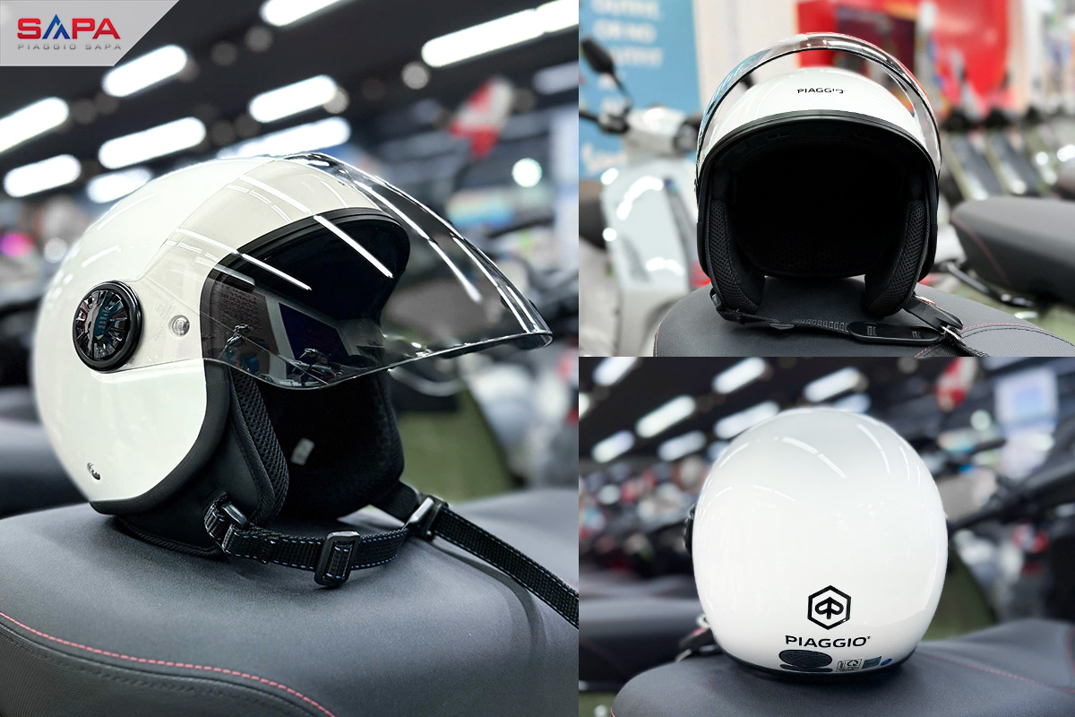 Mũ bảo hiểm Piaggio 2.0 màu trắng, đạt tiêu chuẩn về kiểm định an toàn