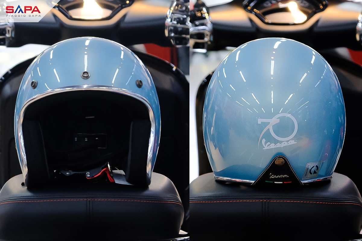 Mũ bảo hiểm Vespa 70th Anniversary màu xanh là phiên bản giới hạn được ra mắt để kỷ niệm cột mốc 70 năm thương hiệu Vespa đồng hành cùng người yêu xe trên toàn thế giới. Với thiết kế tinh tế, màu xanh ngọc đặc trưng và logo kỷ niệm sang trọng, chiếc mũ này không chỉ mang ý nghĩa bảo vệ mà còn là biểu tượng thời trang, khẳng định đẳng cấp của người sở hữu.
