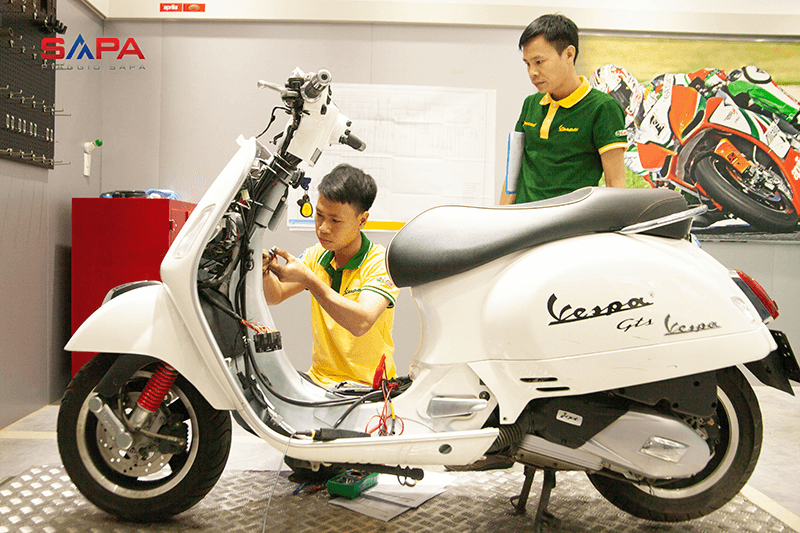 Phần thi thực hành, Ban Tổ chức đánh giá năng lực chuyên môn của kỹ thuật viên về chẩn đoán động cơ và các công nghệ hiện đại đang áp dụng trên xe Vespa, Piaggio như phanh ABS, hệ thống dừng tạm thời “Start & Stop”, cảm biến nghiêng, kết nối điện thoại thông minh với xe…
