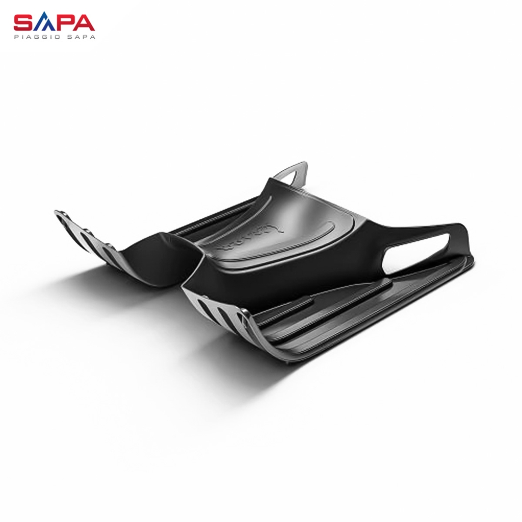 Thảm được in logo Vespa màu đen nổi bật trên nền cao su, tạo điểm nhấn sang trọng nhưng không quá phô trương, đúng chất Vespa.