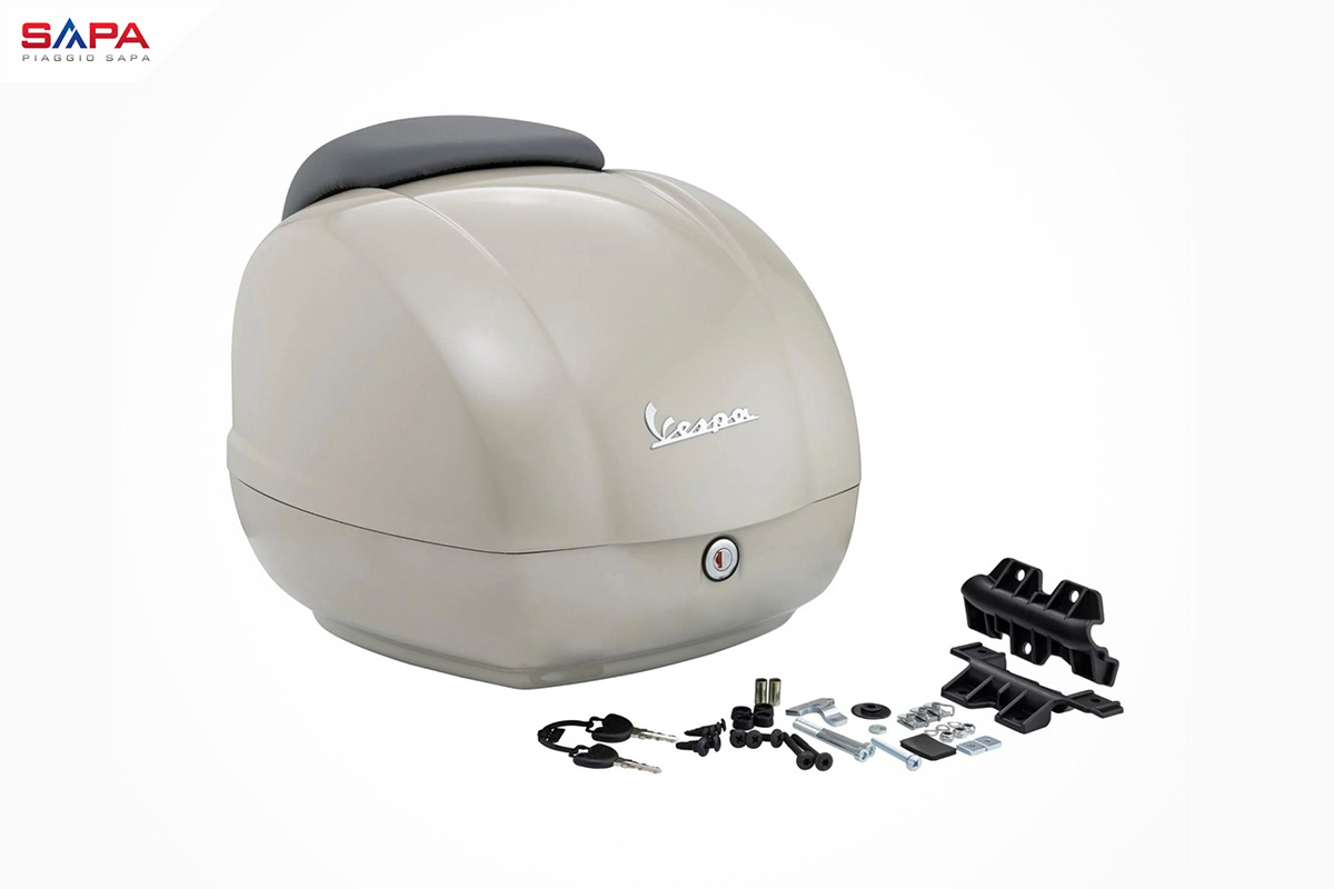 Thùng đựng đồ (topbox) màu Beige có đệm lưng là phụ kiện chính hãng được thiết kế riêng cho dòng Vespa GTV. Với dung tích lớn và thiết kế tinh tế, sản phẩm không chỉ tăng cường khả năng chứa đồ mà còn tôn lên vẻ đẹp sang trọng cho chiếc xe của bạn.