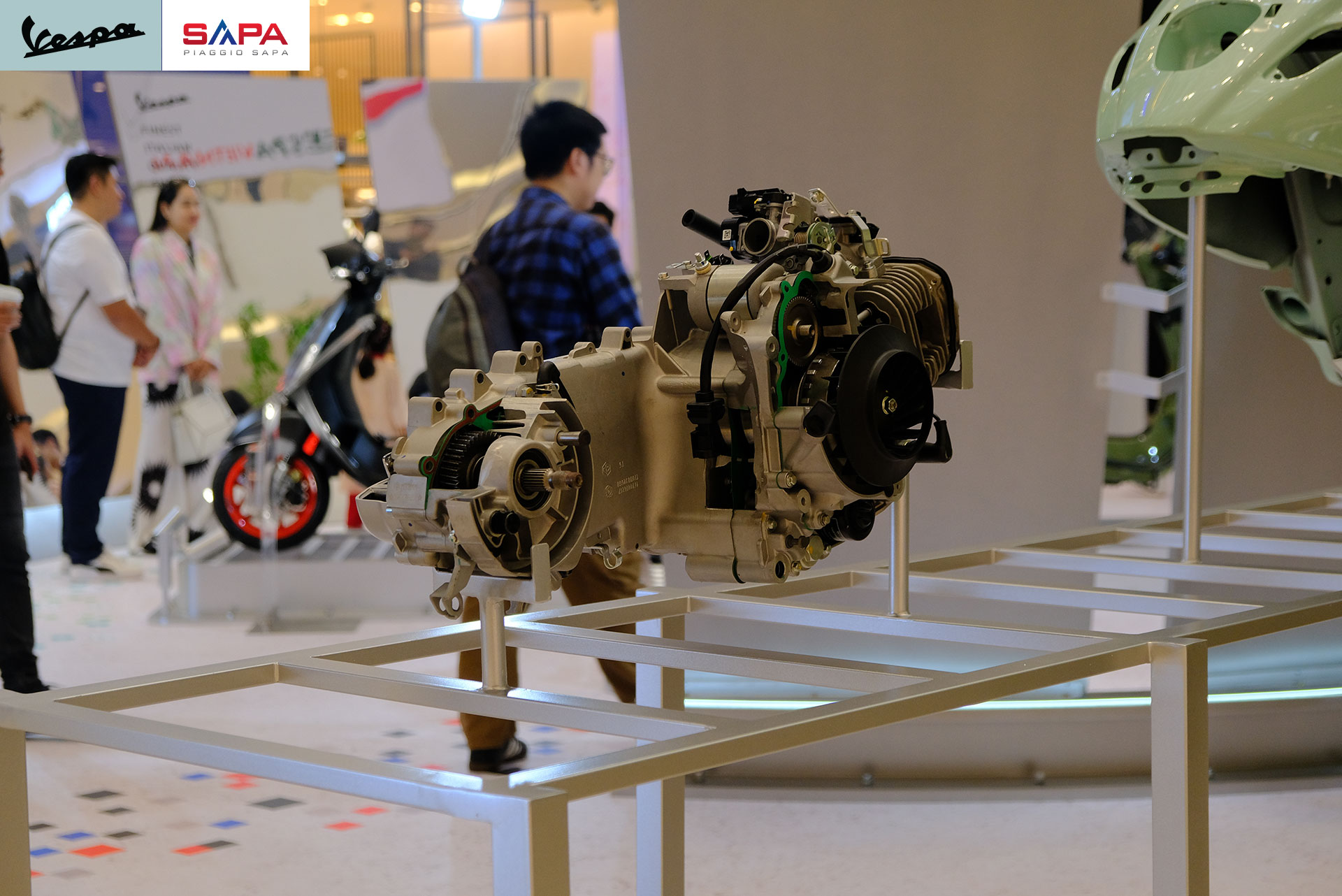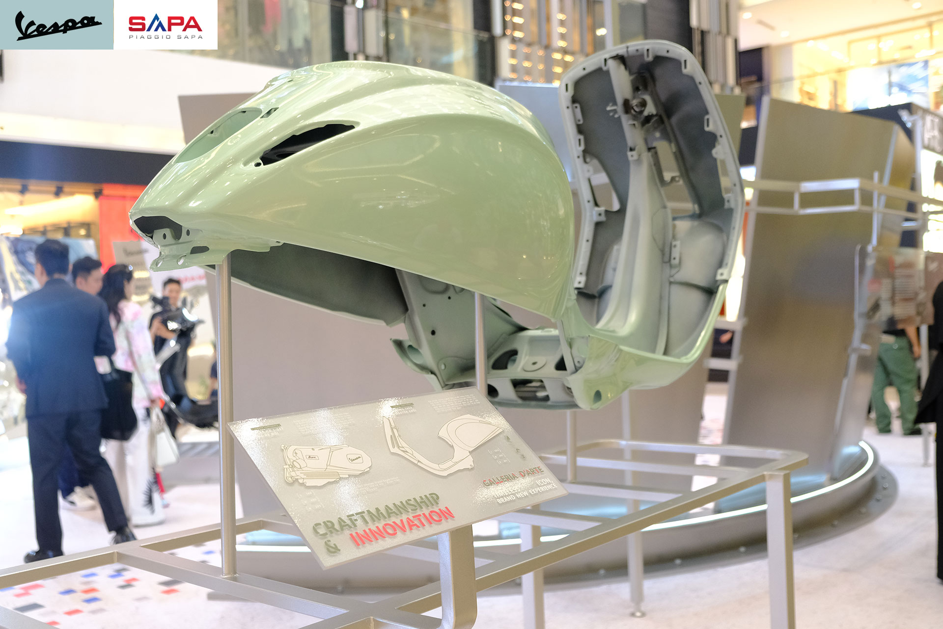 Tại triễn lãm ngoài những mẫu xe thế hệ mới, khách hàng còn có cơ hội xem trực tiếp các kỷ thuật chế tác vespa như công nghệ sơn, khung xe, động cơ.