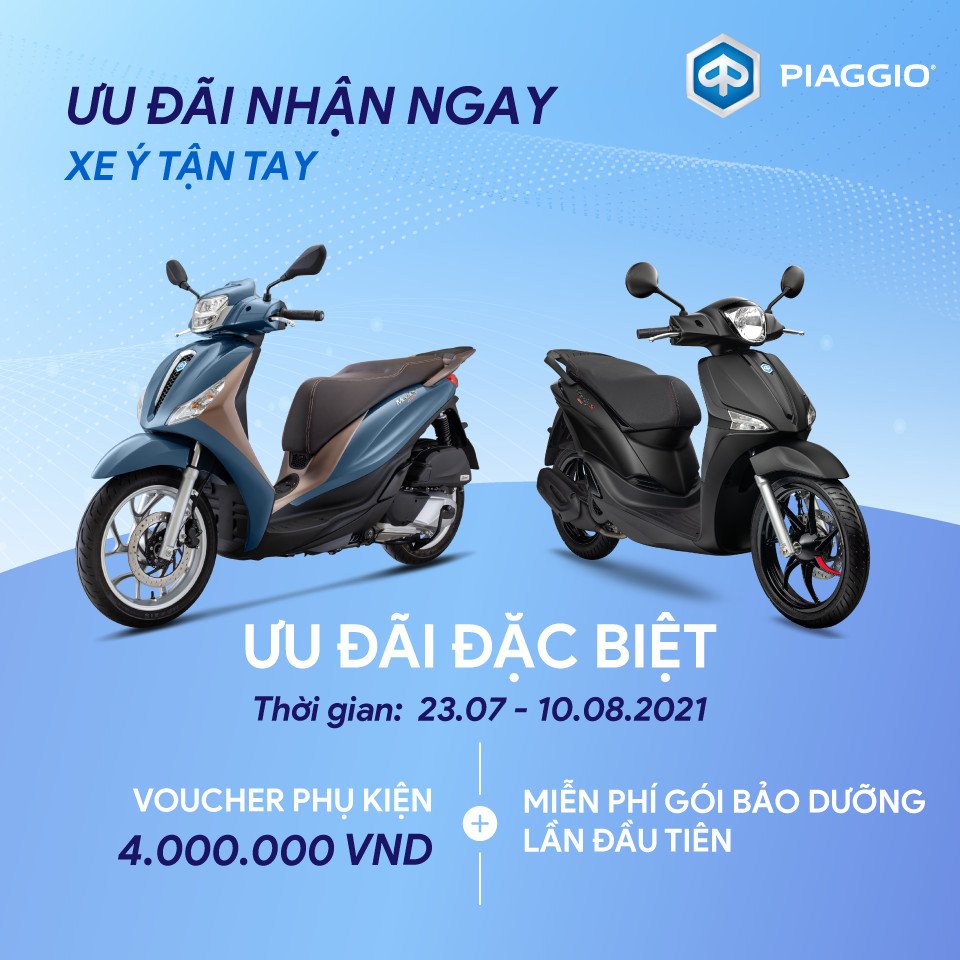 Ưu đãi cao, cơ hội đỉnh khi mua xe Piaggio qua hình thức trả thẳng hoặc đặt cọc mua xe (tương đương 30% giá trị xe) từ ngày 23/7 – 10/8/2021 khách hàng sẽ nhận được: