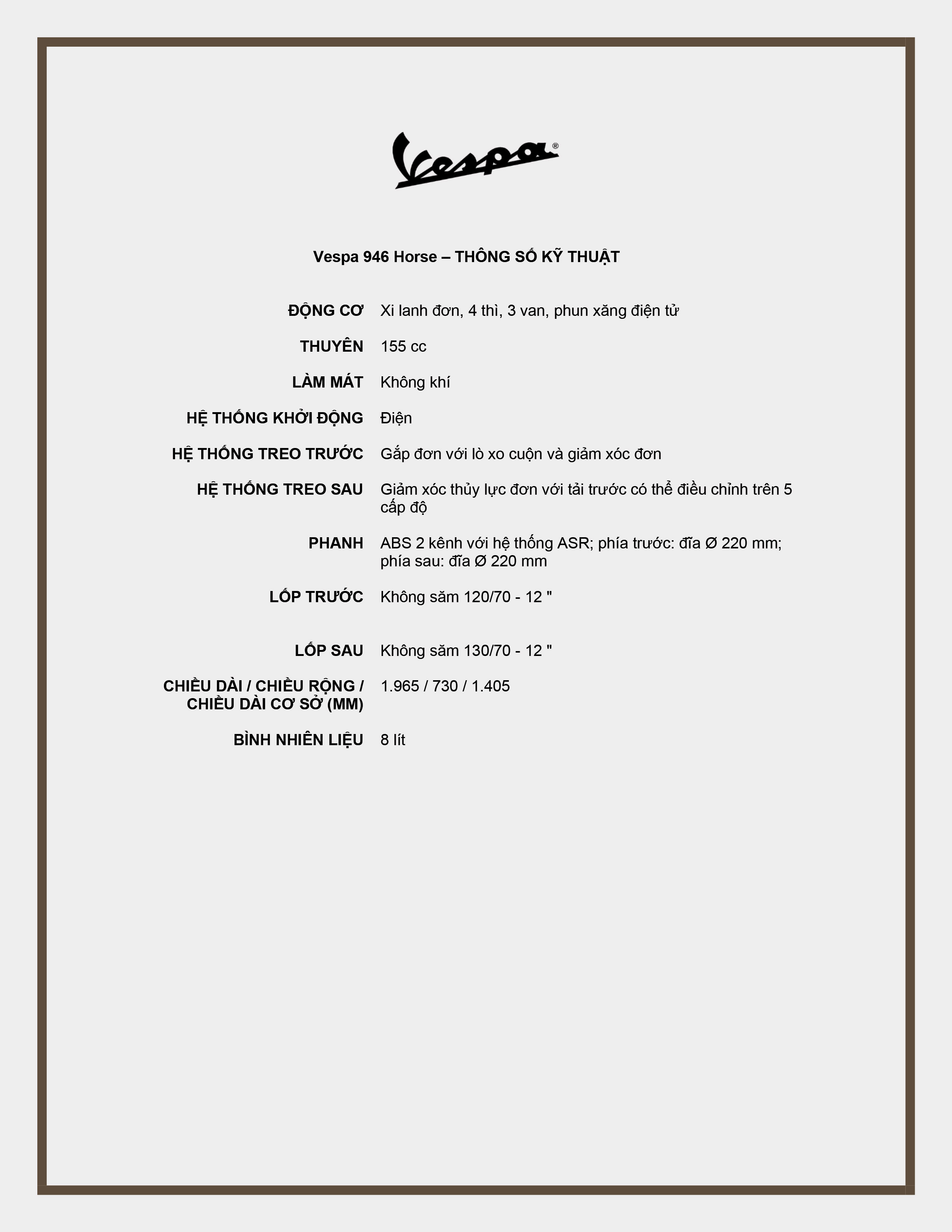 THÔNG SỐ KỸ THUẬT VESPA 946 HORSE