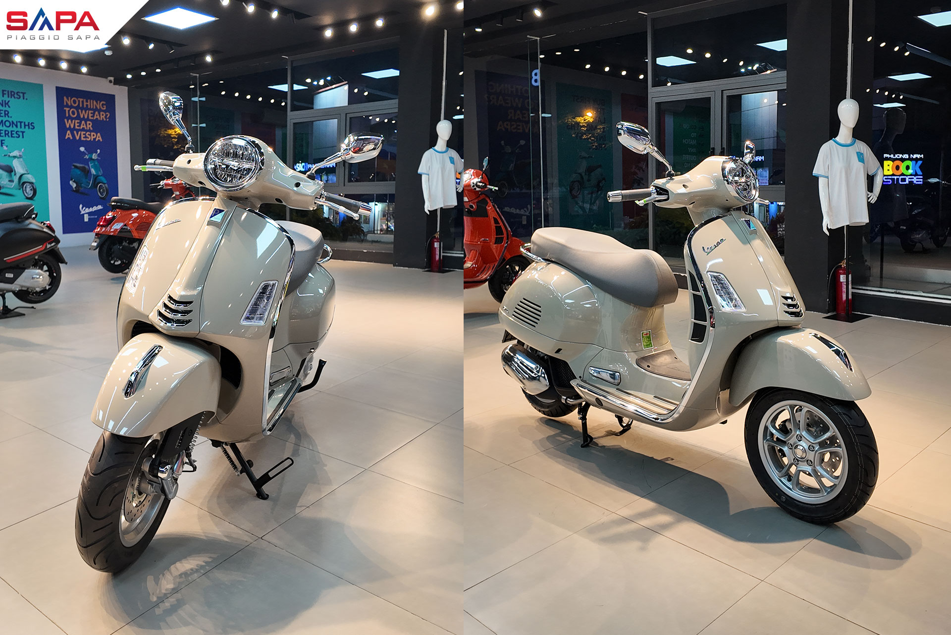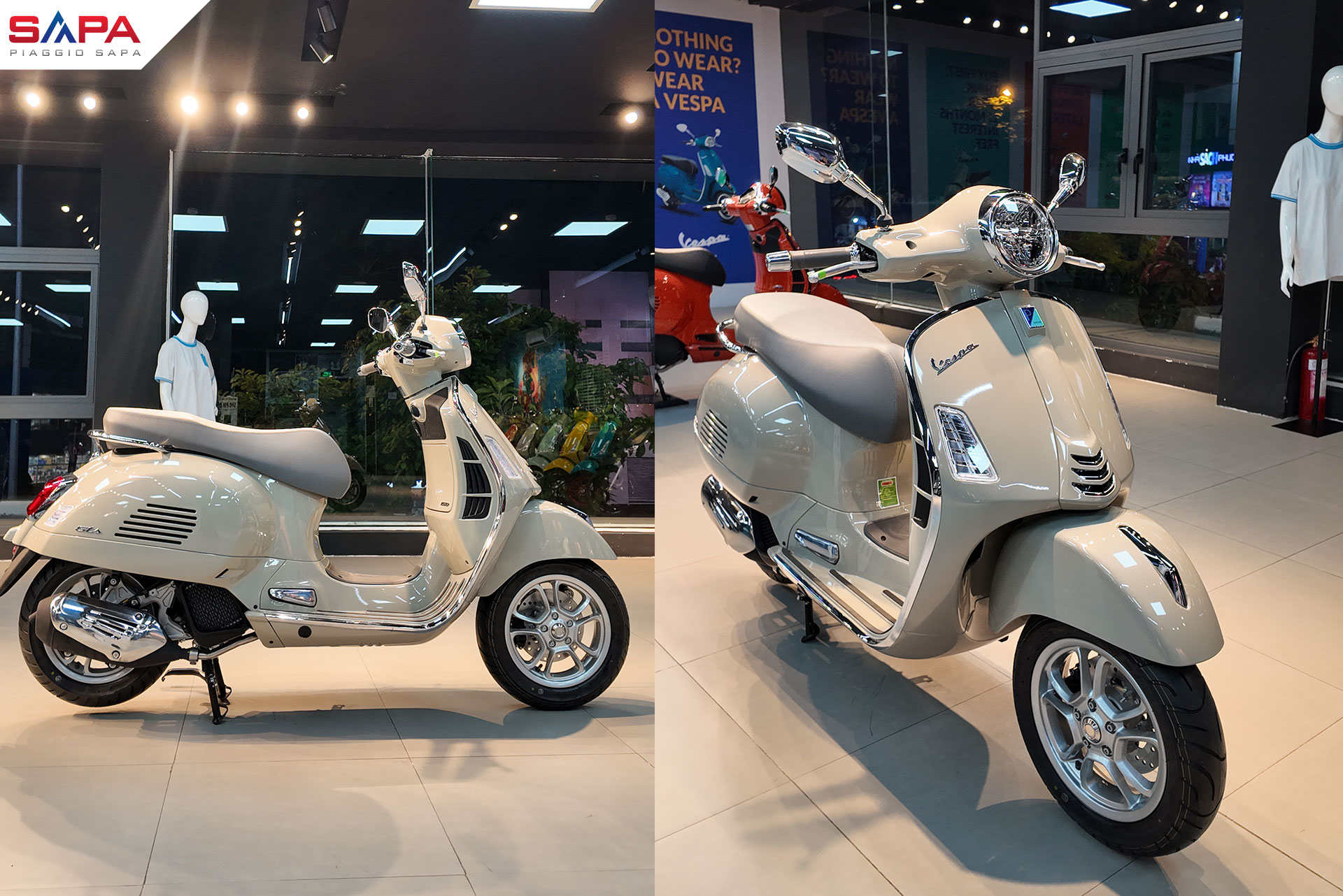 Ngoài ra, tại các hệ thống trung tâm chính hãng Piaggio Sapa luôn có tất cả và đầy đủ các phiên bản Vespa Sprint, GTS, GTV từ 125 đến 300cc, đủ loại và đủ màu sắc.