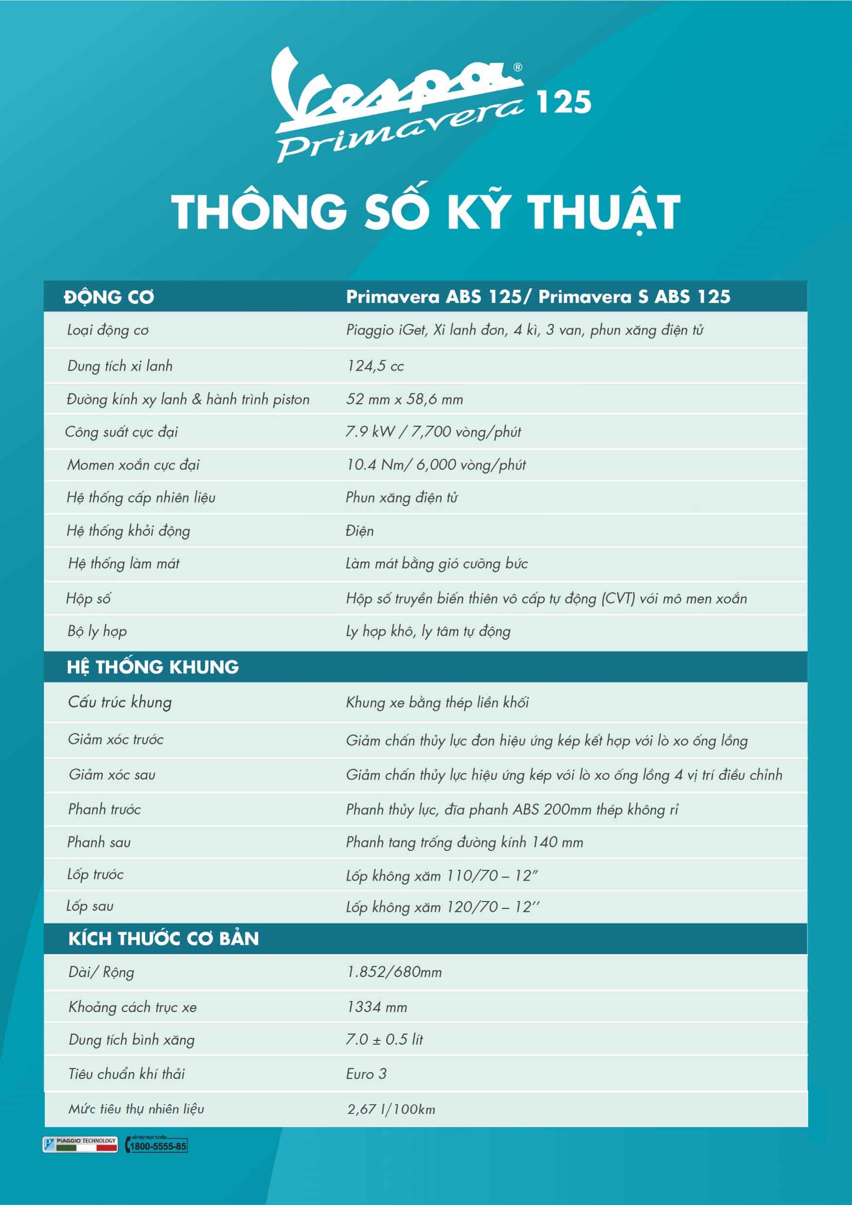 THÔNG SỐ VESPA PRIMAVERA 125.