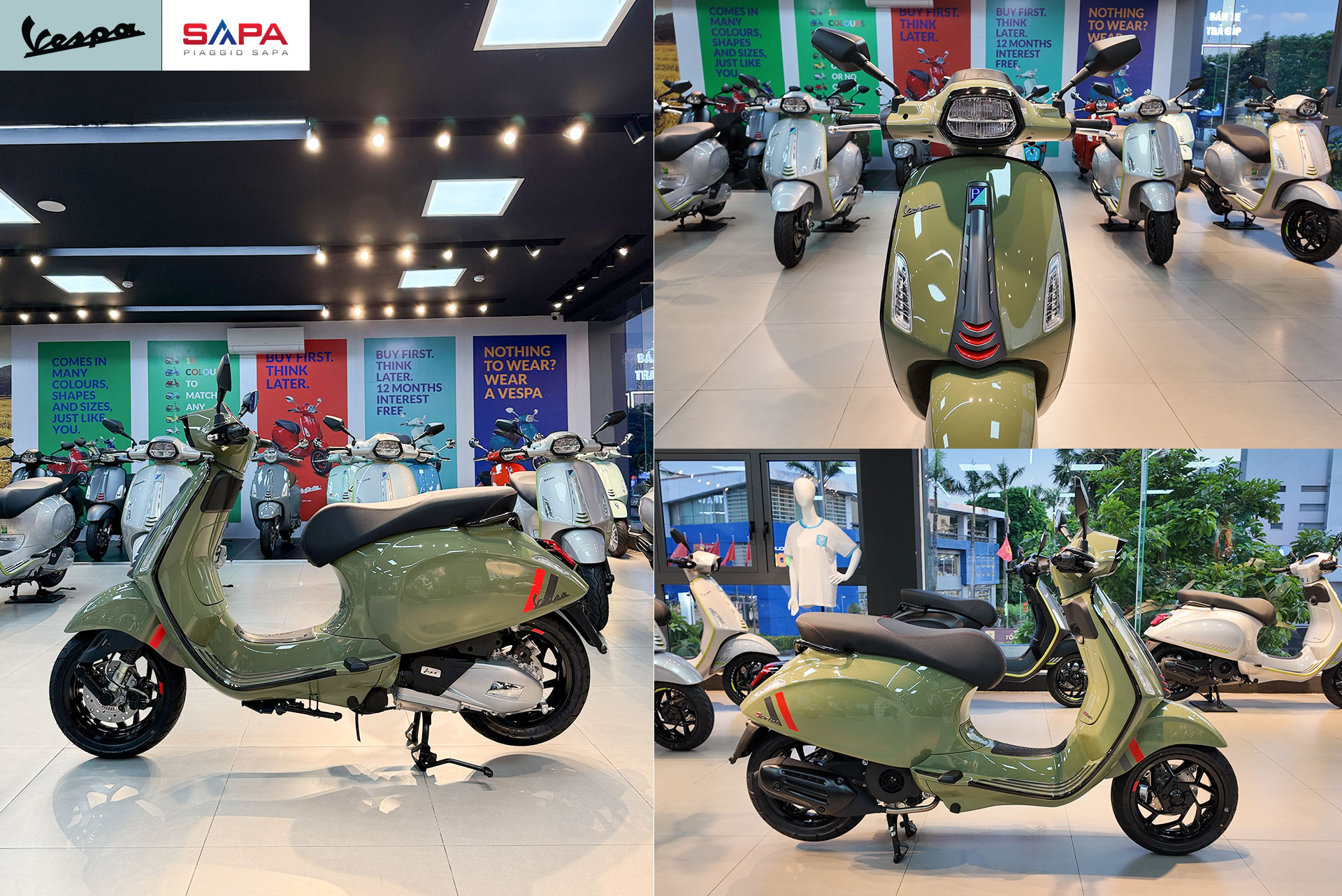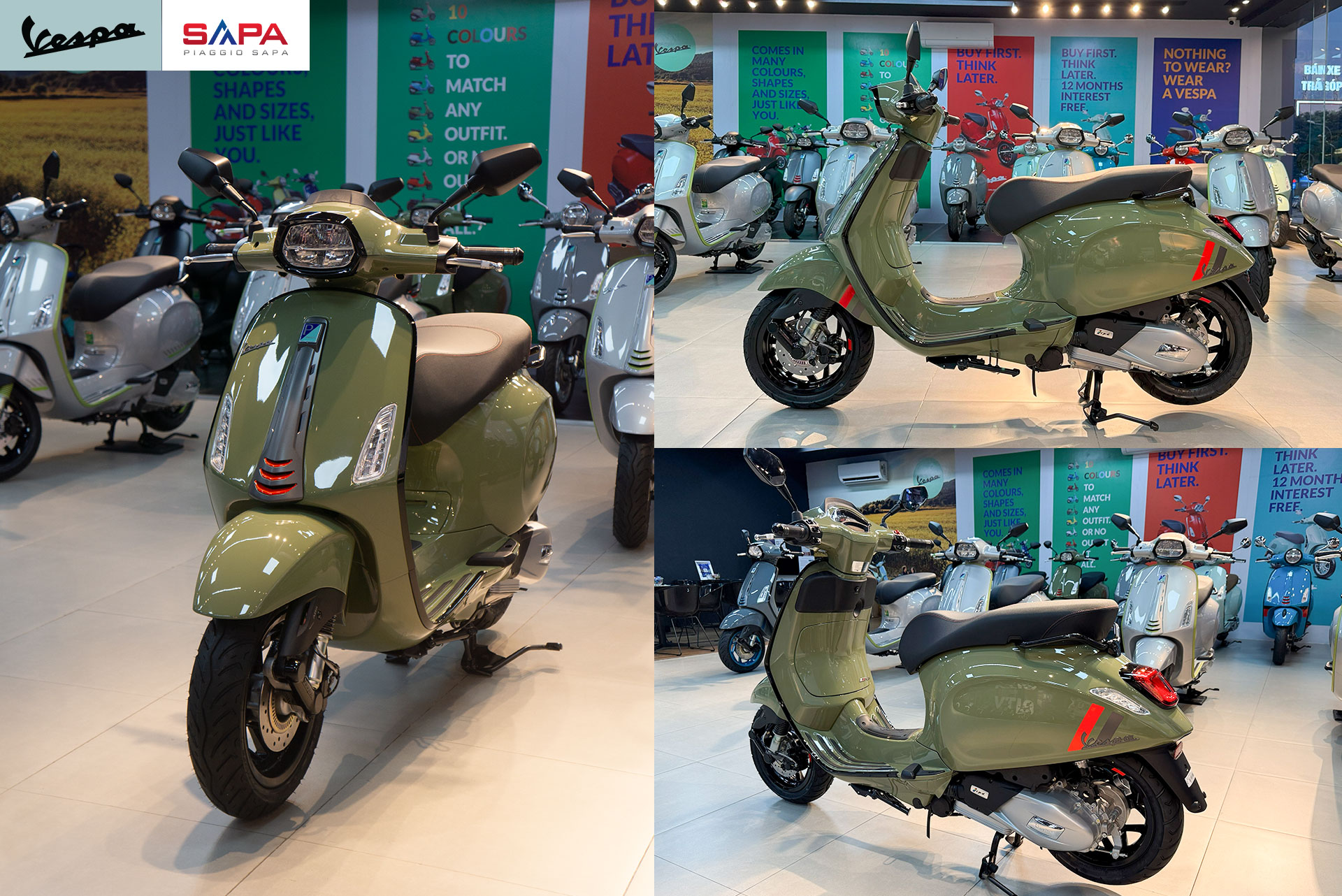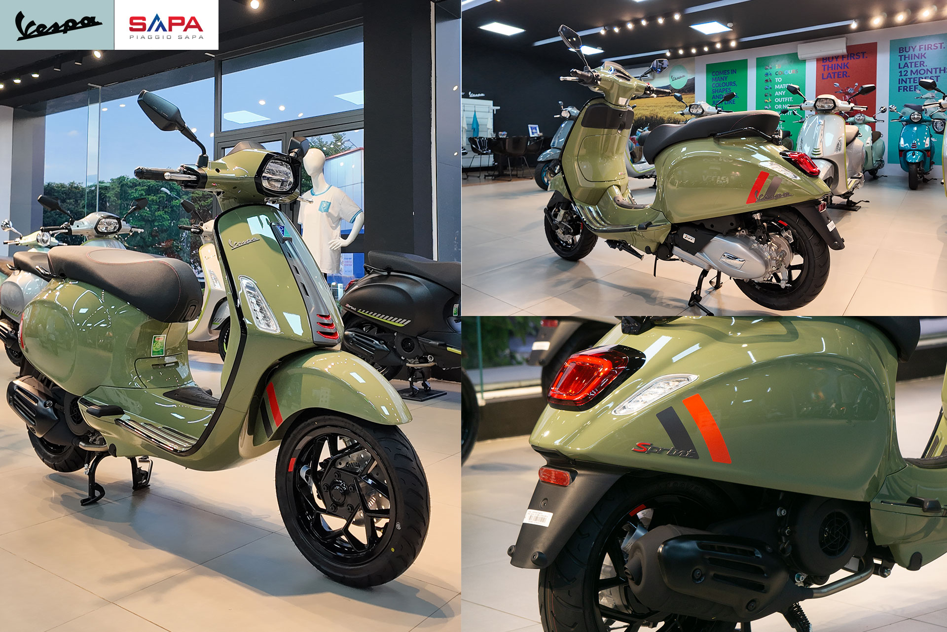 Đây là xe Vespa Sprint S125 bản màu xanh lá (sơn bóng). Xe đã có tại các hệ thống cửa hàng, Quý khách hàng có thể đến trực tiếp các hệ thống đại lý chính hãng Vespa Sapa:
